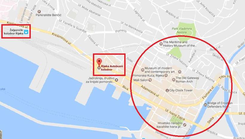 В Риеку можно также добраться автобусом из Триеста (7 EUR), Любляны (цена варьируется от 6 до 20 EUR в зависимости от перевозчика), Граца (27 EUR). В случае международных перевозок цена и время в пути железнодорожного и автобусного сообщений не сильно отличаются. Для поездок по Хорватии однозначно советую выбирать автобус. Например, из Загреба в Риеку ежедневно отправляется более 20 автобусов, время в пути составляет в среднем 2,5 часа, стоимость билета в одну сторону варьируется от 9 до 15 EUR. На автобусе можно уехать как вглубь страны, так и перемещаться по побережью, например, в Истрию.
