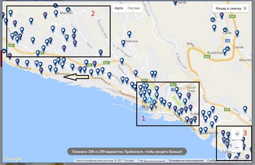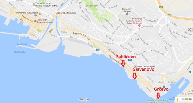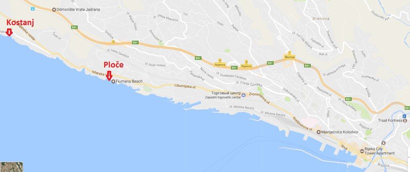 Зона к востоку от Риеки — Журково. Отели в зоне, обозначенной цифрой 3, формально уже за чертой города в поселке Журково, но очень близко к Риеке, туда можно добраться на автобусе. Журково славится своими чистыми пляжами.