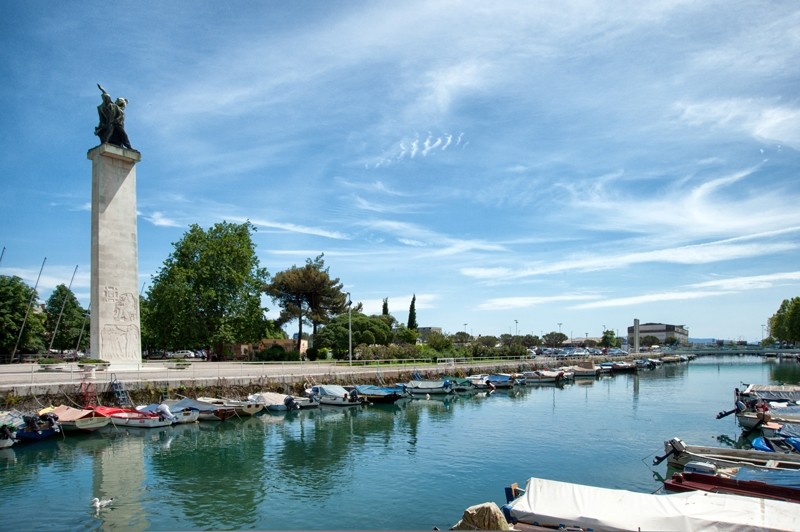 18:00-19:00 — спустившись обратно в город, прогуляемся вдоль реки Рьечины и Мертвого канала. Мертвый канал — это старое русло реки, которое используется как гавань. Когда-то он разделял город на части, а теперь здесь расположены самые важные политические монументы: статуя Освобождения и мост хорватских защитников.
