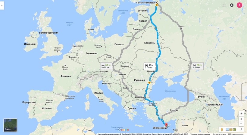Путешествие на автомобиле на Кипр будет долгим, но интересным. Из Москвы расстояние составляет около 3400 километров.