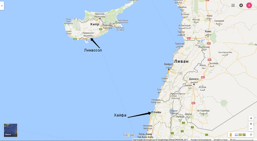 Из турецкого порта Мерсин нужно переправиться на пароме на север Кипра, в город Фамагуста. Транспортировка автомобиля в одну сторону обойдется 35–45 EUR (в зависимости от типа судна). Далее по острову следует направиться на юг, в Лимассол.