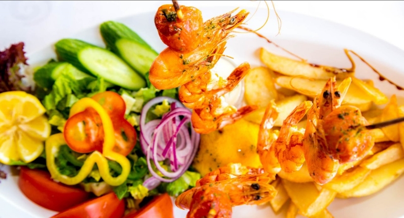 На территории открыты рестораны быстрого питания, где продают не только гамбургеры, но и греческие блюда.