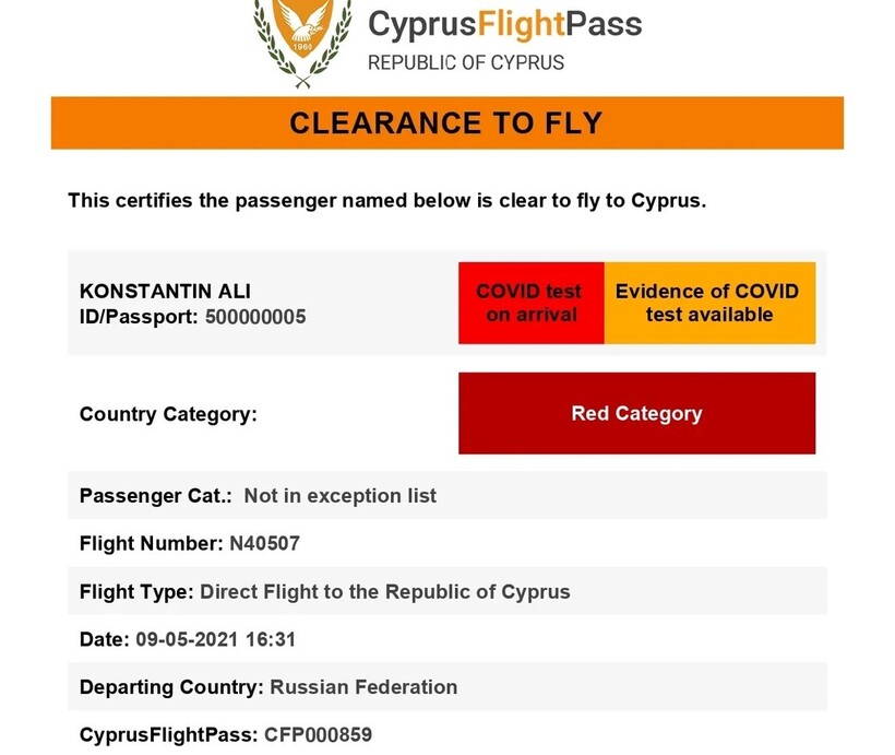 После заполнения анкеты каждый получает Cyprus Flight Pass. Это специальный код, необходимый для въезда в государство.
