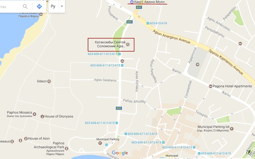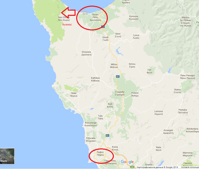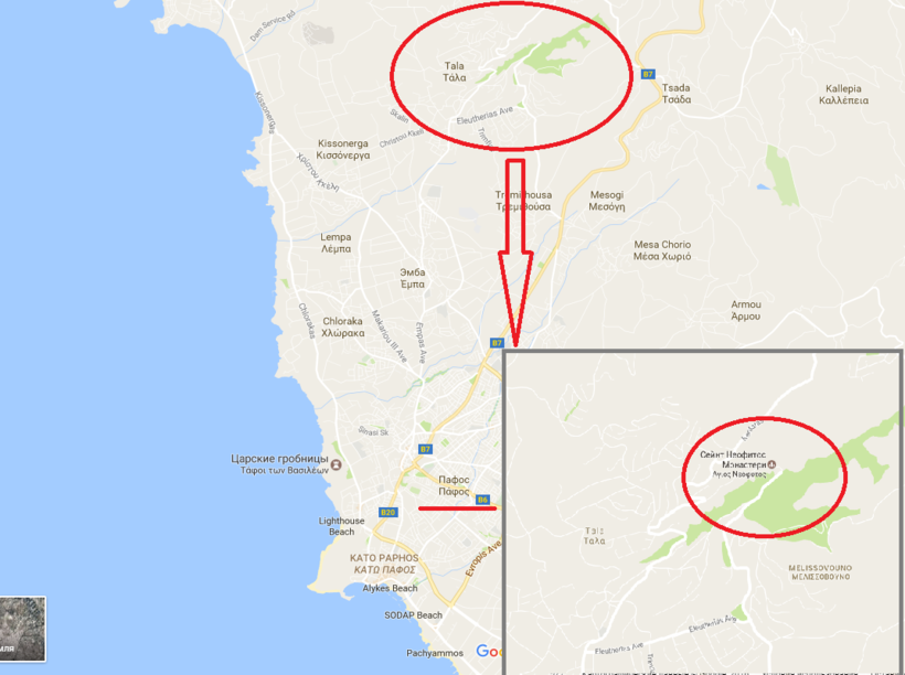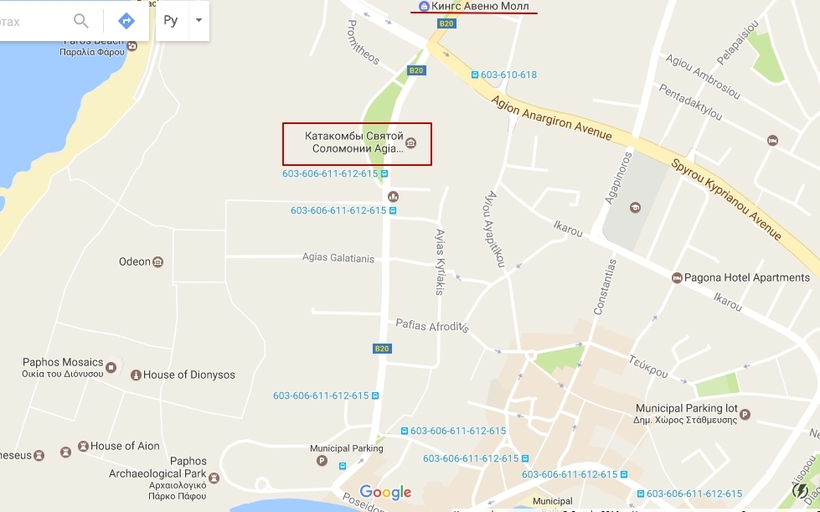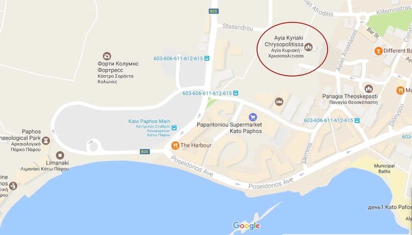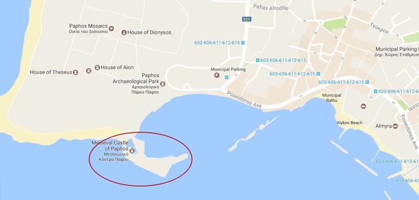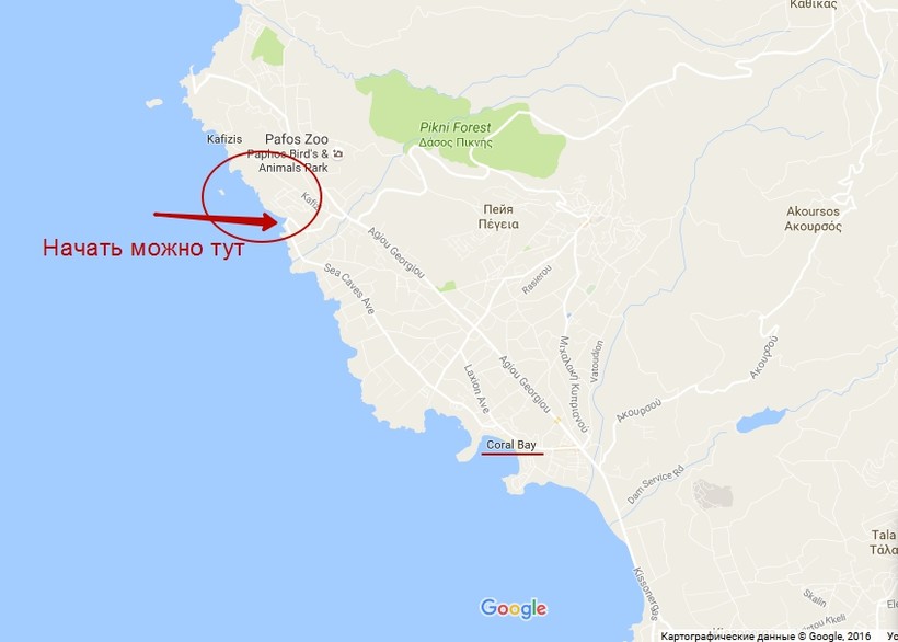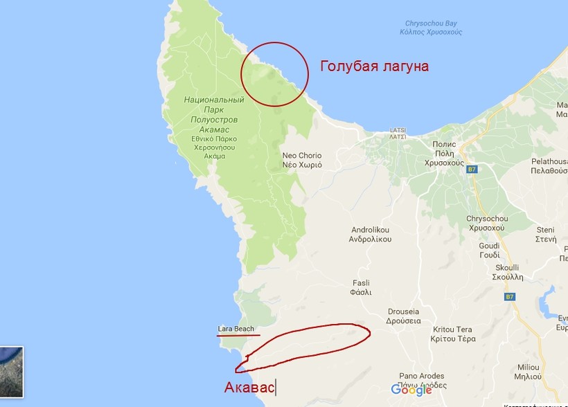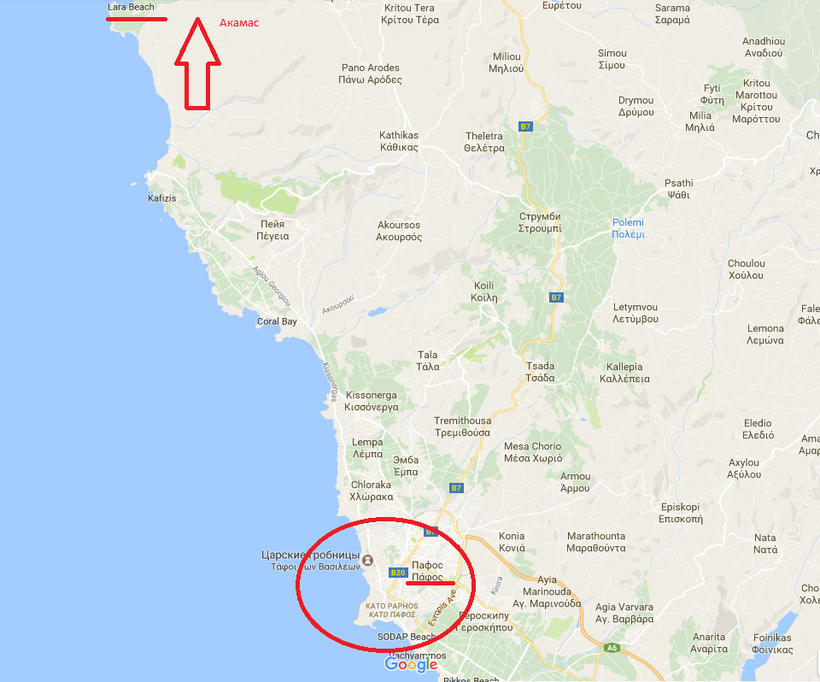 Добраться до бухты несложно, со станции в Като Пафосе ходит маршрутный автобус № 631, который доставит вас прямиком к нужному месту. Для тех, кто путешествует на машине даю карту.