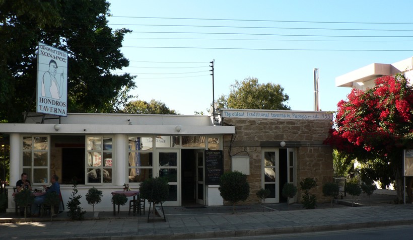 - Таверна Hondros. Она находится рядом с парковкой у автовокзала в Като Пафосе. Расположение может и не очень удачное, зато вкусно готовят и хорошее соотношение цены и качества. На 30 EUR можно сытно поужинать вдвоем.