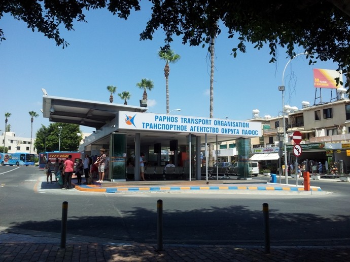 Оттуда уже следует автобус Intercity Buses до Пафоса, длительность поездки — примерно час, стоимость — 4 EUR. В Пафосе у автобуса есть 3 остановки: около McDonald's, у центрального стадиона и автостанции Karavella в центре города.