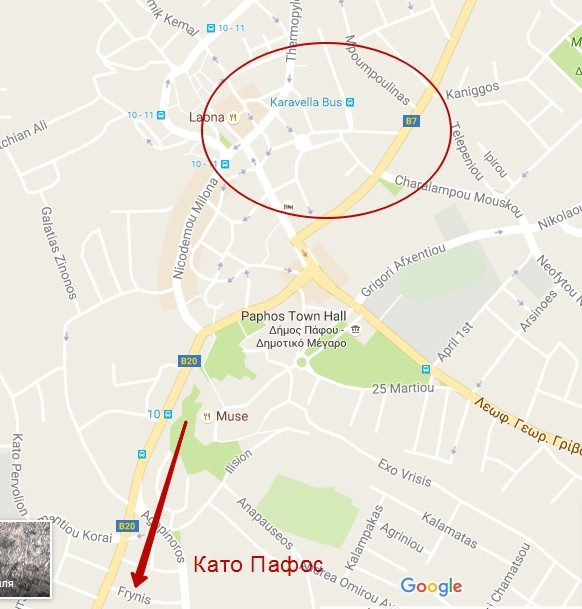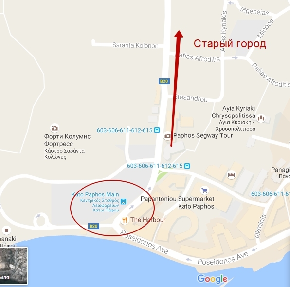 - Автовокзал в Като Пафосе возле набережной является центром всех городских маршрутов и в ближайшие окрестности (туристические маршруты).
