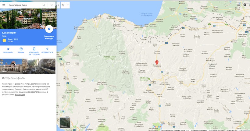 Полезная информация: Начало маршрута: 150 метров южнее площади Троодоса по направлению к полицейскому участку. Протяженность маршрута — 3 километра. Время в пути — 1 час.