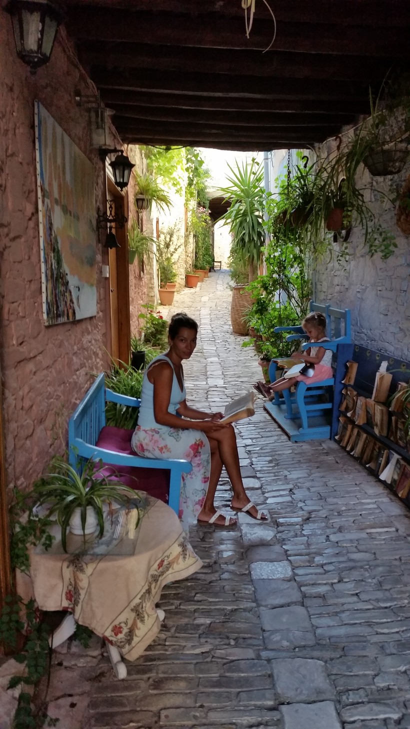 На этой улочке, которая, всего то ничего, метров 100 в длину, можно сделать огромное количество фотографий,посидеть на лавочке в тени и почитать книжку (в основном на английском).