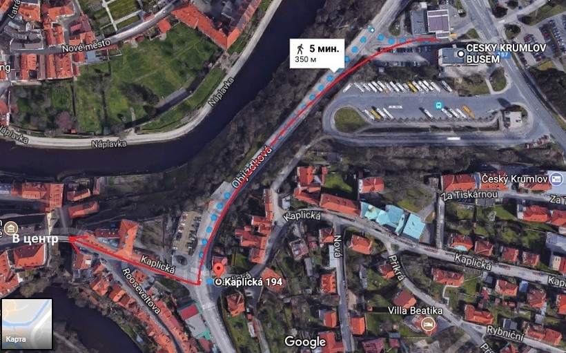 Автовокзал Чески Крумлова (ul. Nemocniční, 381) находится в 10 минутах ходьбы от центра города. Навесов на остановке нет, поэтому ожидание автобуса может быть не самым комфортным в плохую погоду.