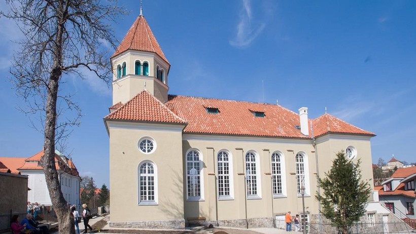 Эта церковь притягивает взгляд с любой точки города благодаря расположению на холме, окруженном рекой Влтавой, и длинному шпилю.