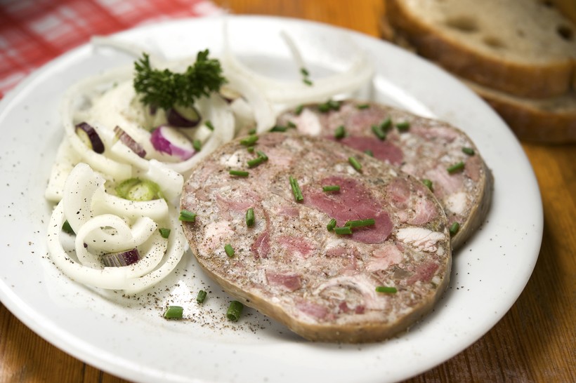 Данная закуска напоминает зельц или холодец – варёное прессованное мясное изделие в натуральной оболочке или банке. Тлаченка обильно посыпается луком и перцем, а также поливается уксусом. Изготавливается эта закуска из различных видов мяса: свинины, говядины, птицы. Это одно из популярных блюд, подающихся к пиву вместе с хлебом и луком. Опять же, готовится Тлаченка по-разному как в ресторанах, так и дома.