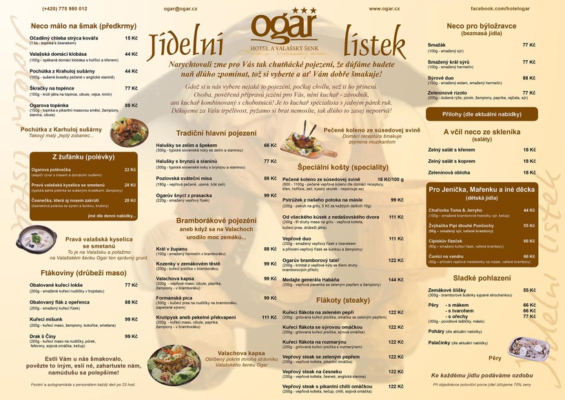 Почти во всех Ресторанах столицы Чехии меню, именуемое здесь Jídelní lístek, подразделяется на jídelniček и pitníček, то есть еда и напитки, соответственно. Каждый из них имеет свои категории.