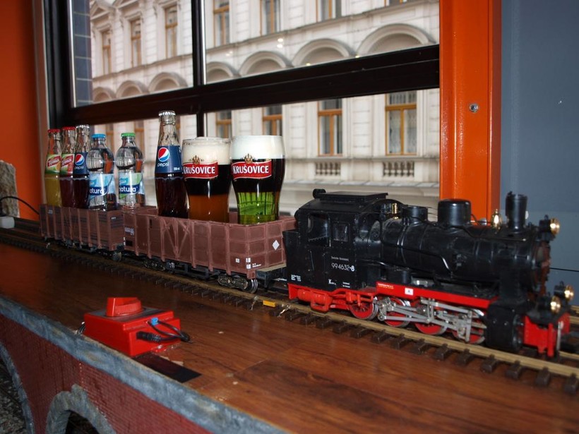 В центре города, прямо на Вацлавской площади, рядом со зданием Национального музея, расположена интереснейшая пивная-депо. Это целое шоу: по залу ездит паровозик с вагончиками и доставляет за столики напитки.