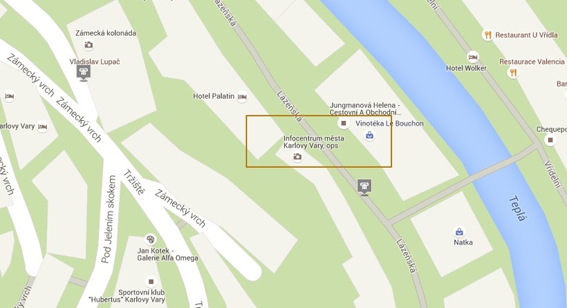 Очень удобно обратиться в информационный центр города Карловы Вары, который работает для всех туристов и имеет собственные экскурсионные туры, а также предлагает индивидуальные поездки. Находится он на набережной реки Тепла, около Млынской колоннады (адрес: Lazenska, 1). Доехать можно на автобусе № 12. Подробнее об общественном транспорте Карловых Вар читайте здесь. Или вы можете идти по набережной Теплы и увидеть центр напротив Vinotéka Le Bouchon.