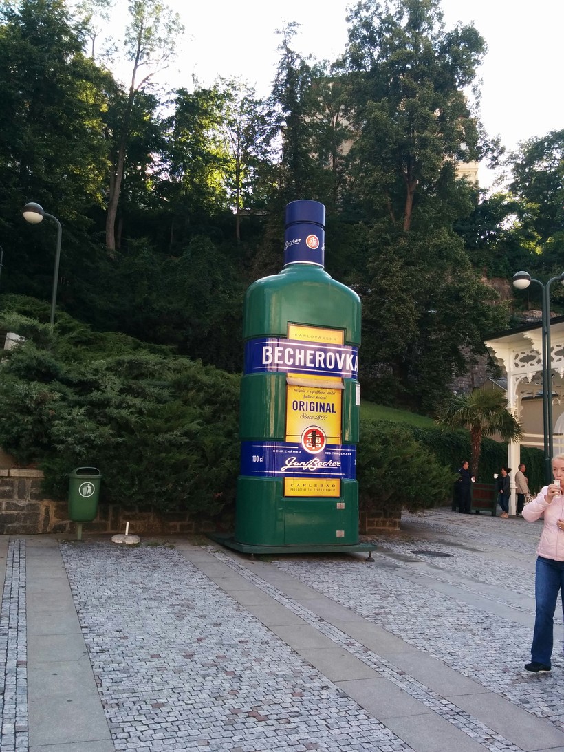 Рядом со зданием музея установили гигантскую бутылку Бехеровки, которая служит отличным ориентиром для туристов и по совместительству маленьким торговым ларьком с ассортиментом этого ликёра.