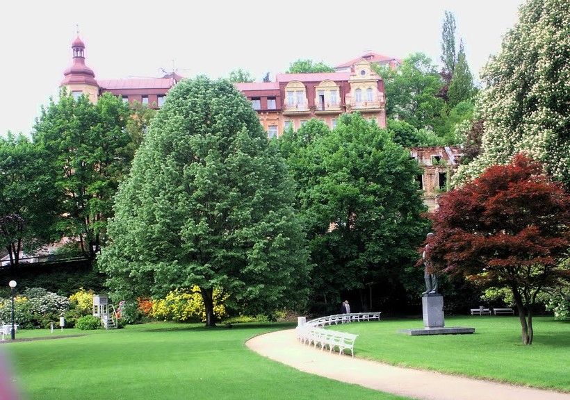 Гулять по набережной Теплы и не зайти в Сады Дворжака – большая ошибка. Очень аккуратные сады, точнее, аллеи, соединенные в скверики, считаются зеленым оазисом в центре Карловых Вар.