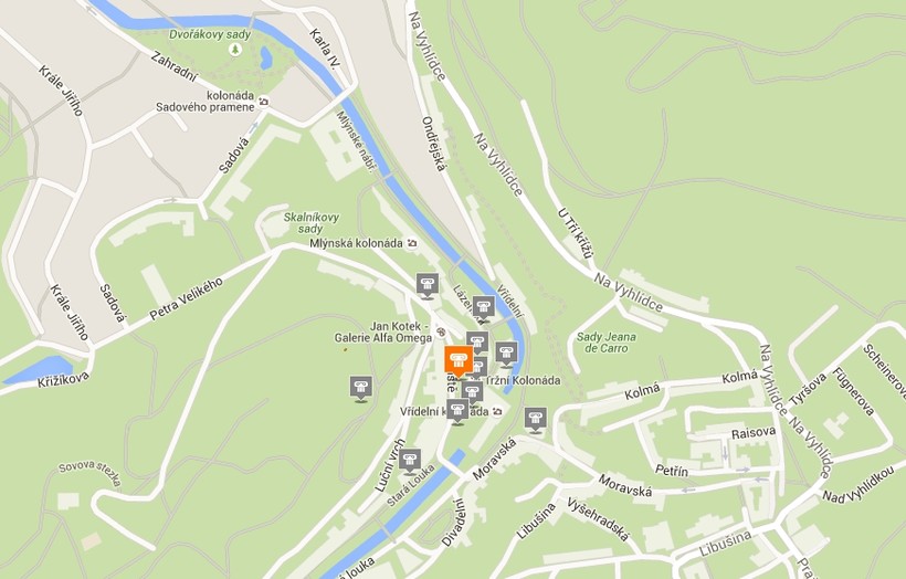 - Пешком из центра: стартовав от Рынка, идти по набережной Теплы, пройти мимо Мельничной колоннады, миновать Военный санаторий. Где-то на этом этапе появятся указатели на сады, да и по скоплению зелени вы их точно найдете! Пройдете чуть менее километра и на протяжении 10-15 минут насладитесь карловарскими красотами.