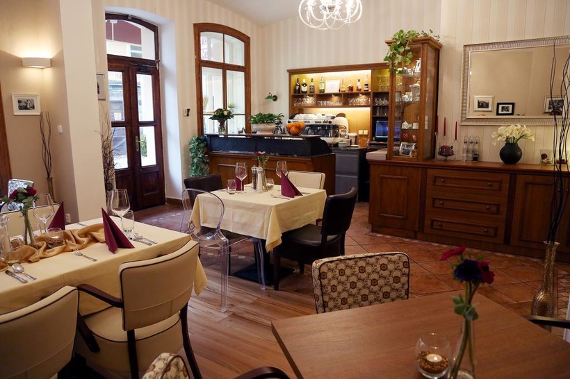 Внешний вид заведения — на уверенную троечку. В меню есть европейская, чешская и почему-то кавказская кухня. При обсуждении ресторана с другими туристами я узнала, что некоторые слышали там грузинскую речь. Может, хозяин грузин? В любом случае, еда там среднего уровня, а вот обслуживание неприятно поражает. Что официант, что администратор смотрят на вас свысока. Знакомые еще пожаловались, что там им в счет вписали напитки, которые они не заказывали.