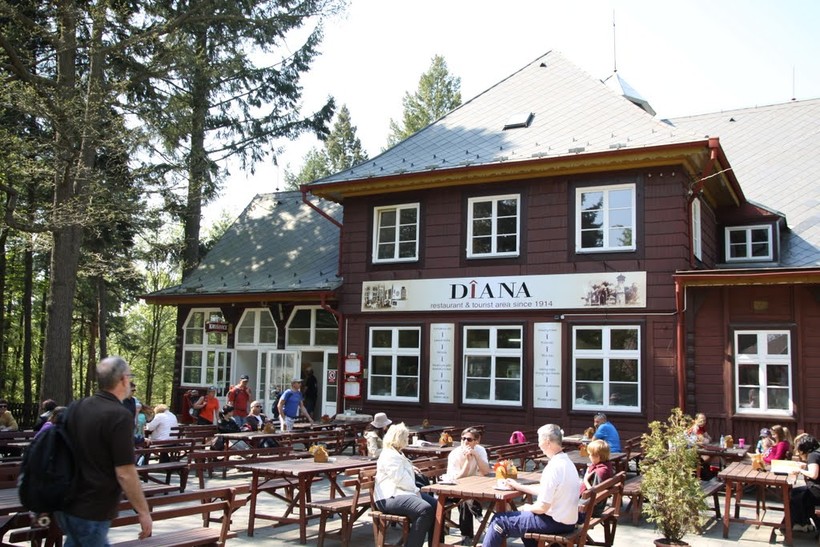 Пожалуй, самый живописный ресторан в Карловых Варах, хотя на 100 % туристический. Он находится у обзорной башни Диана, так что заглянуть сюда можно после осмотра панорамы города, мини-зоопарка, дома бабочек и других достопримечательностей комплекса.