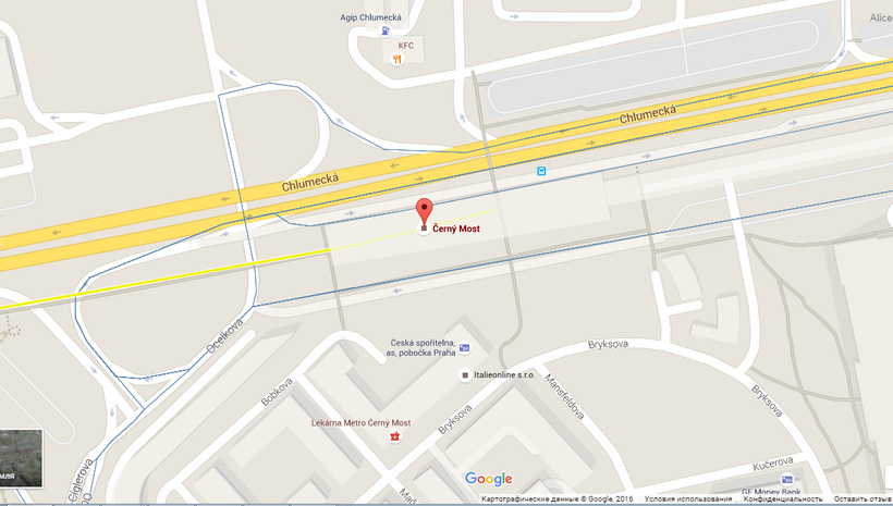 До Черного моста проще всего доехать на метро. Вам нужна последняя станция на желтой линии (линия B), и называется она так же, как и место назначения, – Černý most.