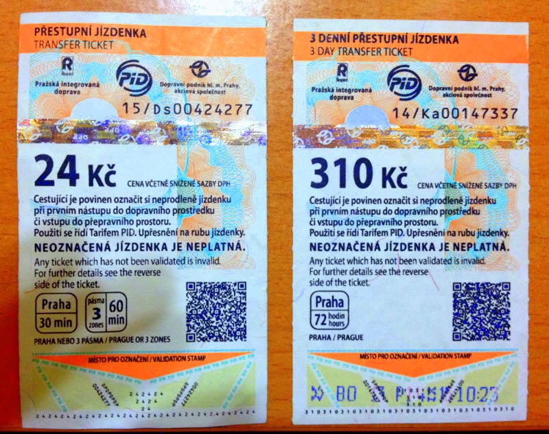 Билеты на транспорт в Праге являются едиными: прокомпостировав его, можно делать пересадки, менять вид транспорта, пока не закончится время его действия. Да-да, ограничиваются билеты временем, а не расстоянием. Если оно не израсходовано за одну поездку, можно пересесть, например, с автобуса на трамвай, и продолжать движение дальше. Для местных действуют специальные проездные документы, недоступные без гражданства или вида на жительство. Поэтому для приезжих существуют следующие варианты и цены: