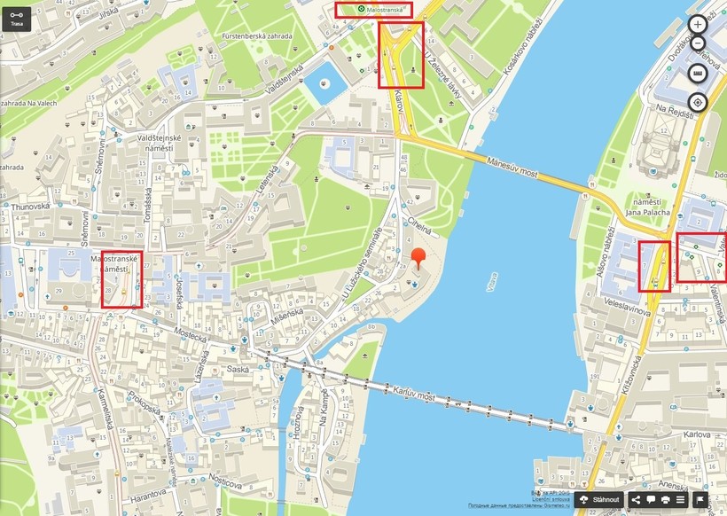 Чтобы добраться до музея, можно доехать до следующих остановок на трамвае: Staroměstská, Malostranská, Malostranské náměstí. Также доехать можно по зелёной ветке метро до станции «Malostranská» или «Staroměstská».