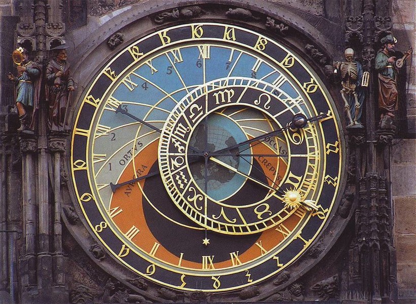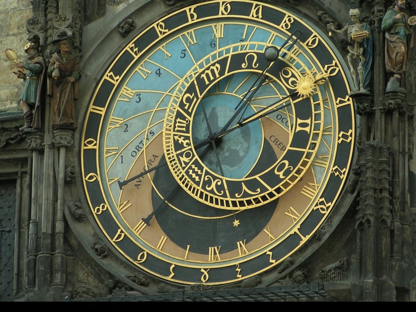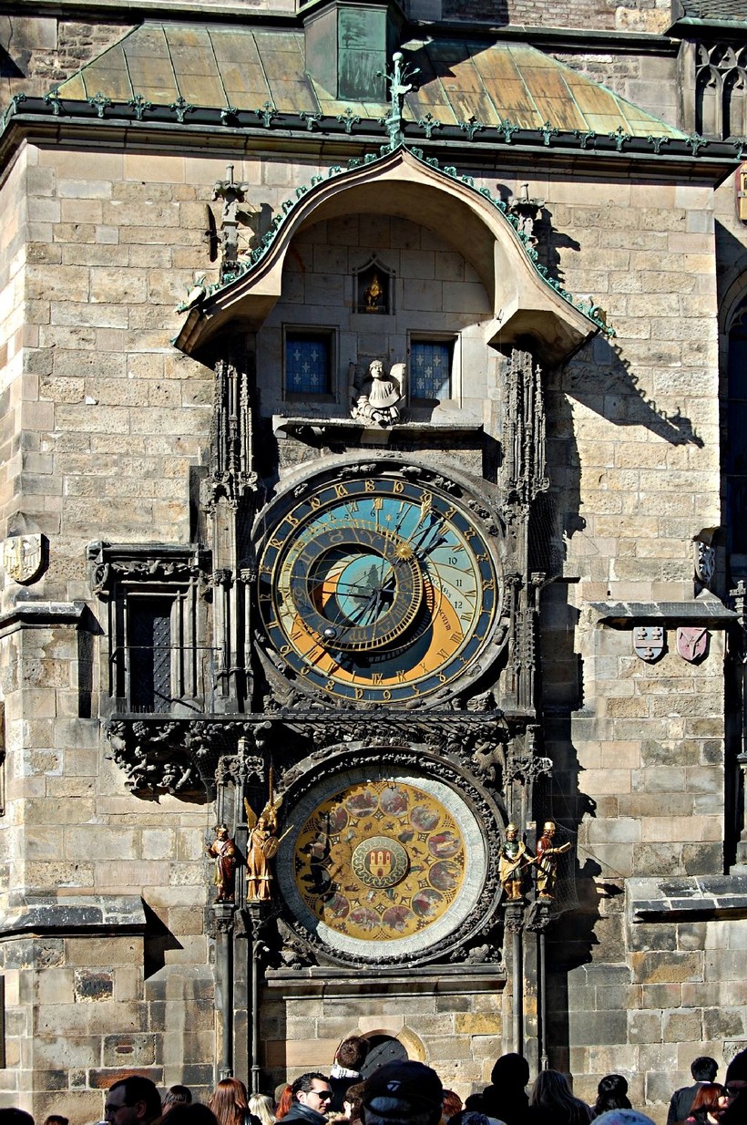 Представляет собой астролябию с оснащением часового механизма. Часы иллюстрируют геоцентрическую систему мира: в центре Земля, а вокруг вращаются Солнце и Луна. И хотя такая система явно устарела, она до сих пор остаётся для многих туристов и жителей города не напоминанием об ошибочности данной версии, а красивой сказкой, воплощённой мастерами прошлого в знаменитых Пражских курантах.
