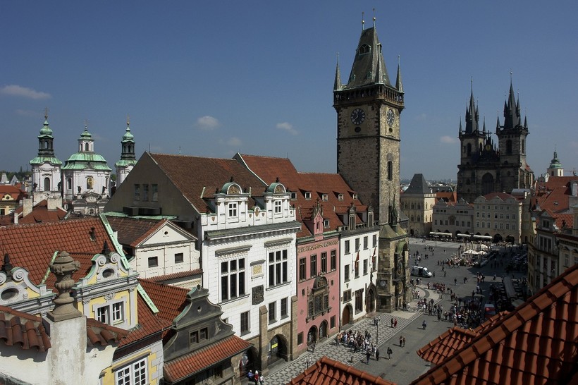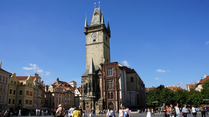 Староместская ратуша находится ровно на противоположной стороне площади.