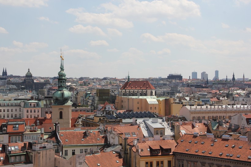 Подняться наверх можно на лифте или пешком, я советую вам вверх прокатиться и сэкономить время, а вот вниз спускаться по лестнице, чтобы изучить информационную экспозицию, размещенную по стенам. Из неё я узнала, что во время войны Староместская площадь была чуть ли не ключевым местом сбора нацистов, многие здания были оккупированы и впоследствии разрушены.