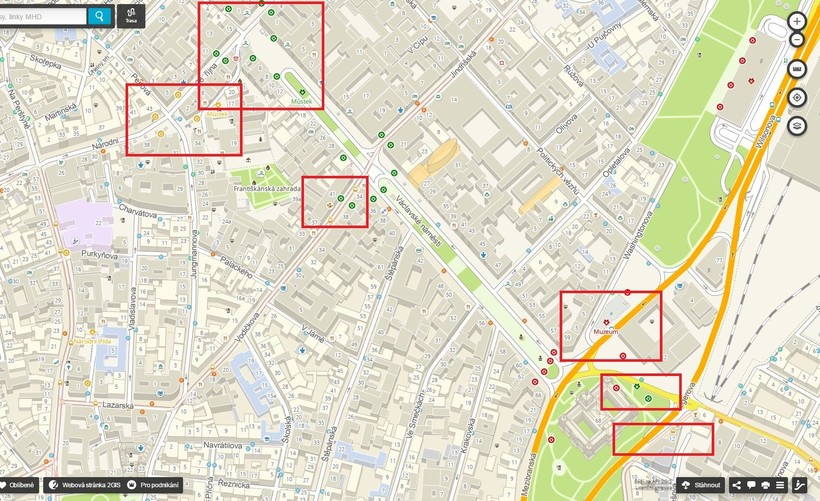 - по жёлтой или зелёной ветке метро до станции Můstek, а также по красной или зелёной ветке метро до станции Muzeum.