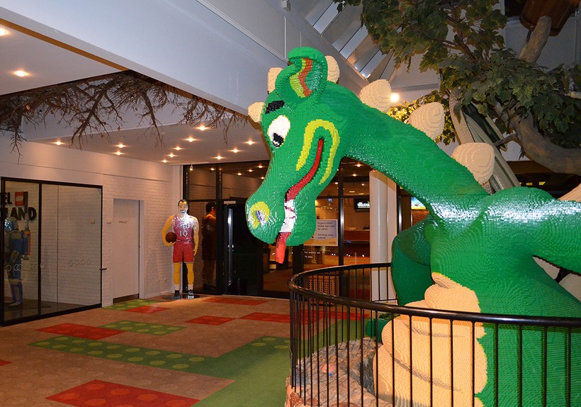 Здесь повсюду LEGO: начиная с поражающего воображение большого дракона в вестибюле и стены на ресепшн, полностью составленной из мини-фигурок, и заканчивая рисунком на ковровых дорожках в коридорах и брелками на ключах от номеров.