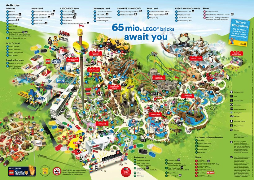 Разумеется, «Леголенд» – smoking free парк, так как в первую очередь создан для детей. Но если вы, как и я, подвержены вредной привычке, не беспокойтесь – в парке есть 4 зоны для курильщиков (они тоже обозначены на схеме).
