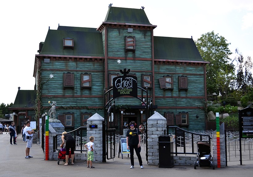 Меня же тут в полный восторг привёл аттракцион, не имеющий отношения к основной тематике данной зоны: The Haunted House – дом с привидениями. Он относительно недавно появился в «Леголенде» и представляет собой копию одного из серийных наборов LEGO. Так совпало, что это мой самый любимый набор LEGO, и встретить его здесь в натуральную величину я никак не ожидала. Когда ты вдруг попадаешь внутрь собственного конструктора – это непередаваемые ощущения :).