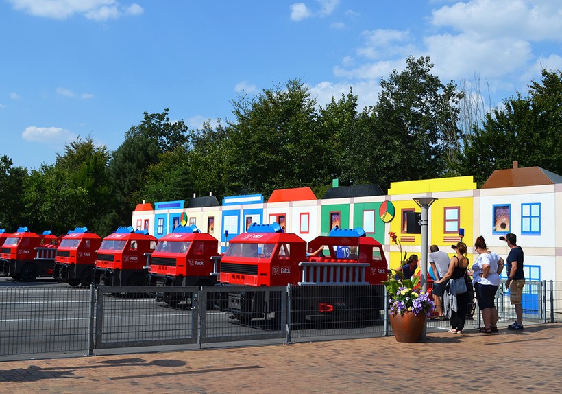 Двигаемся дальше и попадаем в Страну Приключений. Название говорит само за себя – тут находятся более серьёзные и захватывающие аттракционы для ребят старшего возраста. Головокружительные горки X-treme Racers – одни из самых экстремальных в парке, а мне понравились семейные состязания Falck Fire Brigade, где команды на красных пожарных машинах азартно соревнуются, кто быстрее потушит «пожар».