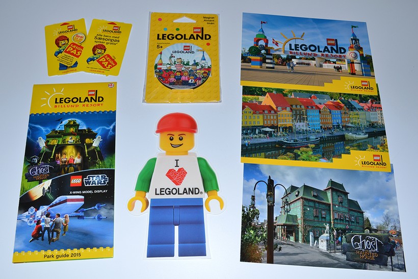 Если же такие дорогие приобретения, как сам конструктор, в ваш бюджет не вписываются – не расстраивайтесь. В магазине можно найти и более дешёвые сувениры – магнитики, открытки, книжки, детская одежда с символикой LEGO и многое-многое другое. Вот, например, мои покупки из датского «Леголенда»: