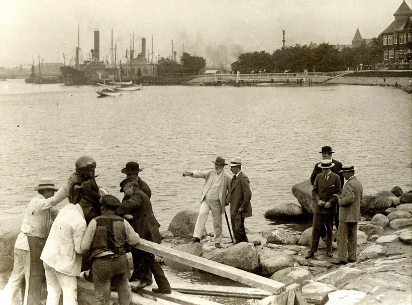 Карл Якобсен умер меньше, чем через год после открытия статуи и, к сожалению, уже не увидел, как его Русалочка сначала стала самым популярным в городе памятником, а потом настоящим символом, с которым стали ассоциировать в мире не только Копенгаген, но и всю Данию. Да что говорить — посмотрите ниже на старую фотографию 1913 года, на которой куча ребятишек позирует на фоне Русалочки, а неподалёку на камнях удобно расположились дамы. Совсем как сегодняшние туристы, только смартфонов в руках не хватает :) Памятник только-только открылся, а уже словно притягивает к себе людей.