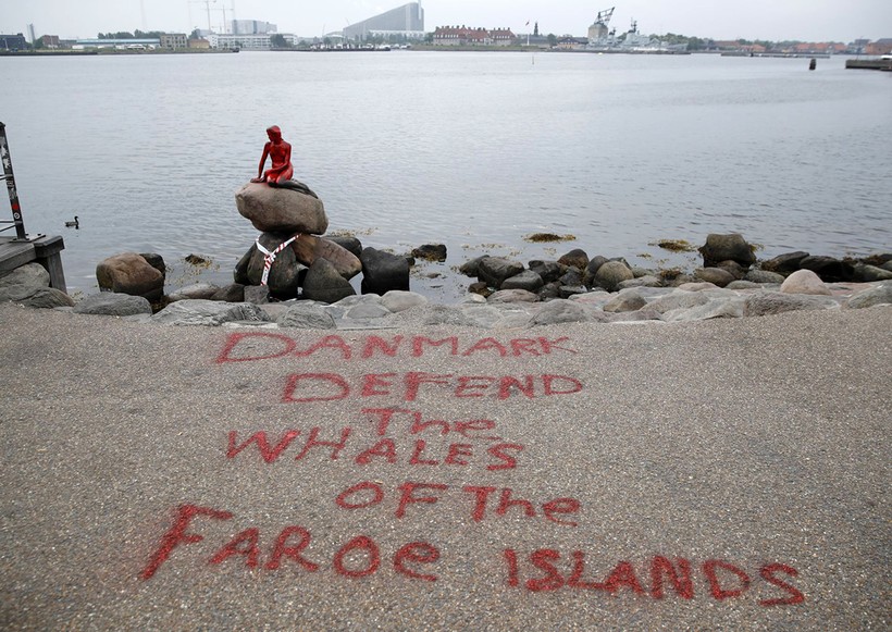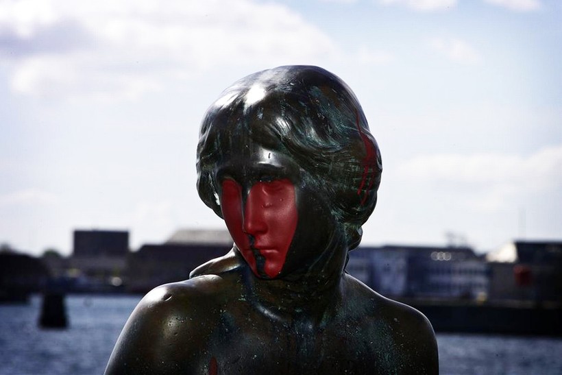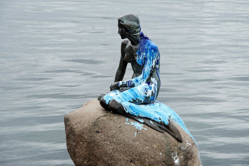 - 2017 год. 30 мая статую облили красной краской — девушка снова стала невольной посланницей социального протеста. На берегу перед памятником той же краской была сделана надпись: «Дания, защити китов Фарерских островов». Этот акт был устроен в знак протеста против жестокой традиции забоя китов, существующей на Фарерах с XVI века. Что ж, лично я полностью поддерживаю этот протест, но вандализм, конечно, одобрить никак не могу.