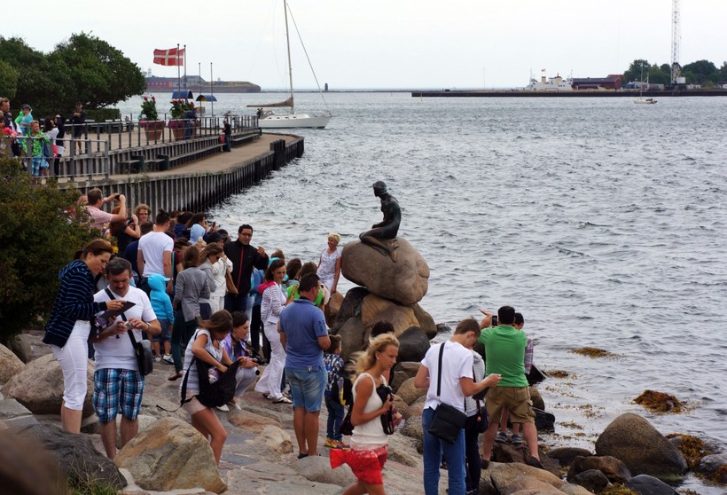 - Сфотографироваться. Ну, конечно же, фото с Русалочкой — это обязательная задача любого туриста в Копенгагене :) И не так уж легко выполнимая, как вам кажется! Я впервые пришла к Русалочке после долгого дня прогулок по городу, уже в сумерки. Было ужасно холодно, несмотря на лето, с пролива дул пронизывающий до костей ветер, а я очень устала. У статуи практически никого не было, я сделала пару фотографий и решила, что приду сюда ещё раз завтра, солнечным днём и нормально сфотографируюсь, а не в замёрзшем и уставшем состоянии. Так я и сделала, но на следующий день меня ждал большой сюрприз. Огромная толпа туристов возле статуи, была видна ещё издалека, а сама Русалочка напоминала голливудскую кинозвезду, окружённую папарацци, без конца щёлкающими фотоаппаратами. Пробиться к статуе и сделать нормальное фото без чужих голов в кадре было практически нереально. Имейте в виду, что такой балаган здесь почти всегда, так что, может, и правда лучше прийти сюда поздно вечером или рано утром, когда никого нет?