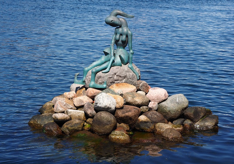 - Найти других Русалок. Если вам не удалось пробиться сквозь плотную толпу туристов и сфотографироваться с Русалочкой — не расстраивайтесь. В конце-концов, это же такая банальность! :) Увековечьте себя на более оригинальном фоне. Неподалёку от Маленькой Русалочки есть ещё две Русалки — они гораздо менее популярны, поэтому возле них обычно никого. А потом похвастаетесь друзьям снимком с такой Русалочкой, о которой мало кто знает.Если вы приехали к Русалочке на автобусе, то вернитесь на остановку Indiakaj и пройдите от неё чуть севернее — там будет пирс, выходящий в небольшой залив, который здесь образуют воды Эресунна. Здесь в воде сидит альтернативная версия знаменитого памятника, больше похожая на мутанта. Это «Генетически модифицированная Русалочка», созданная датским скульптором Бьорном Ноергаардом для выставки в Ганновере в 2000 году. Художник создал целую серию подобных скульптур, призванных показать, что генная инженерия может быть опасна для человечества. В сентябре 2006 года все они были установлены в порту Копенгагена. Если любите такие штуки, вам тут должно понравиться.