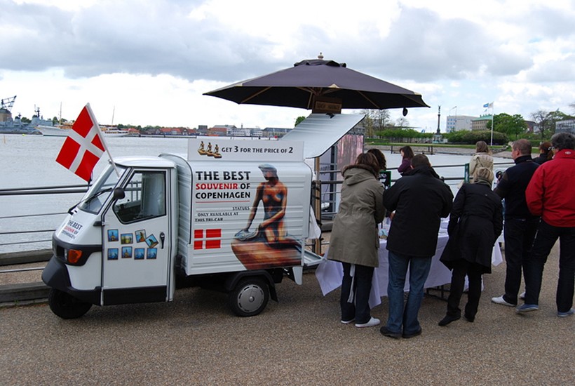 - Купить сувениров. Рядом с Русалочкой на причале почти всегда стоят фирменные фургончики с сувенирами. Не спешите хватать первый попавшийся магнитик —этого добра с изображением Русалочки полно в любой сувенирной лавке Копенгагена, и там они дешевле. Присмотрите что-нибудь поинтереснее — может быть, маленькую копию самой статуи?