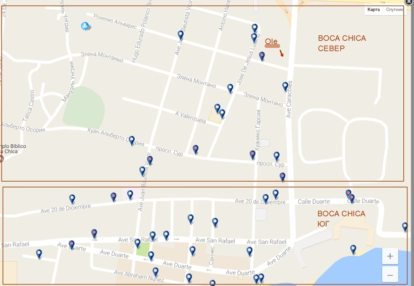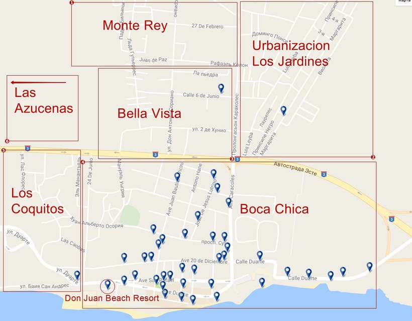 Условно район Boca Chica можно разделить на 2 части: северную и южную.