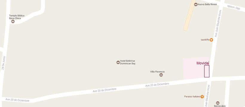 Если путь до побережья для вас не имеет значения, можете выбрать жилье в северной части Центрального района Бока-Чики. Дойти до пляжа отсюда вы сможете примерно за 15–20 минут. Эта часть района удобна тем, что здесь располагается продуктовый супермаркет Ole.