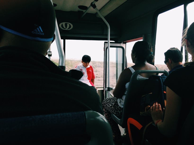 Удобно еще на материке купить тур, тогда вас встретят и доставят до гостиницы и достопримечательностей. Меня впервые в жизни встречали с табличкой "Daria Ofitserova". Немногословный загорелый мужчина провёл до автобуса, куда набились все пассажиры самолёта, включая американскую пару с ребёнком и четырьмя чемоданами, туристов в эквадорских шляпах, группы школьников, индейцев и меня — дамы в розовом курортном комбинезоне.