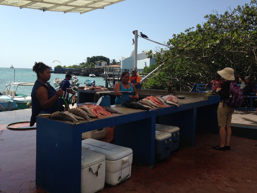 В начале улицы по утрам открывается рыбный рынок — местные продают морепродукты, а пеликаны пытаются украсть рыбу с прилавков. В конце улицы — порт, откуда отправляются яхты и корабли на другие острова.