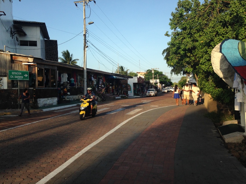 Улица, которая идет вдоль берега океана в столице Галапагосов, называется авеню Чарльза Дарвина. Там центр цивилизации, кафе и рестораны, туристические бюро.