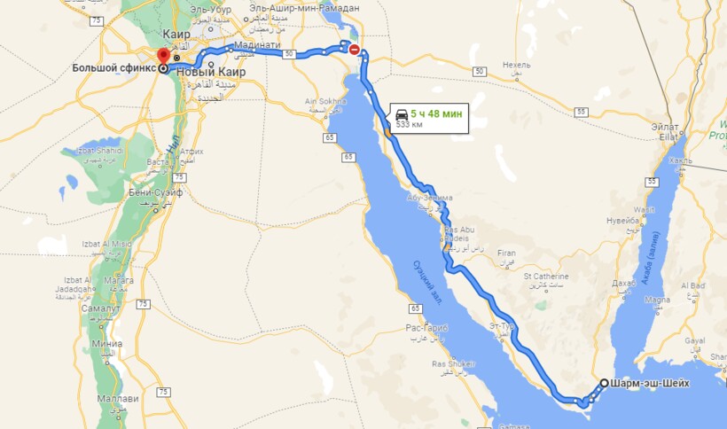 Популярный курорт Шарм-эш-Шейх и столицу Египта разделяют порядка 500 км. Как и из Хургады, из этого города в Каир ежедневно выполняются прямые авиарейсы а/к EgyptAir, Nile Air и Air Arabia Egypt. Стоимость билета в одну сторону начинается от 60 $ (4300 руб.).