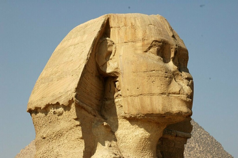 Монумент Большой египетский сфинкс находится в окрестностях города Гиза (Египет), расположенного в 30 км от Каира.