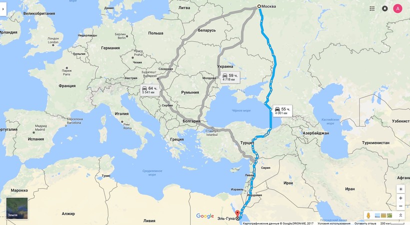 Вряд ли кто-то поедет на автомобиле в Египет, но просто для справки расскажу, сколько ехать до Эль-Гуны. От Москвы расстояние больше 4 000 километров. Из Санкт-Петербурга — более 5 000 километров.