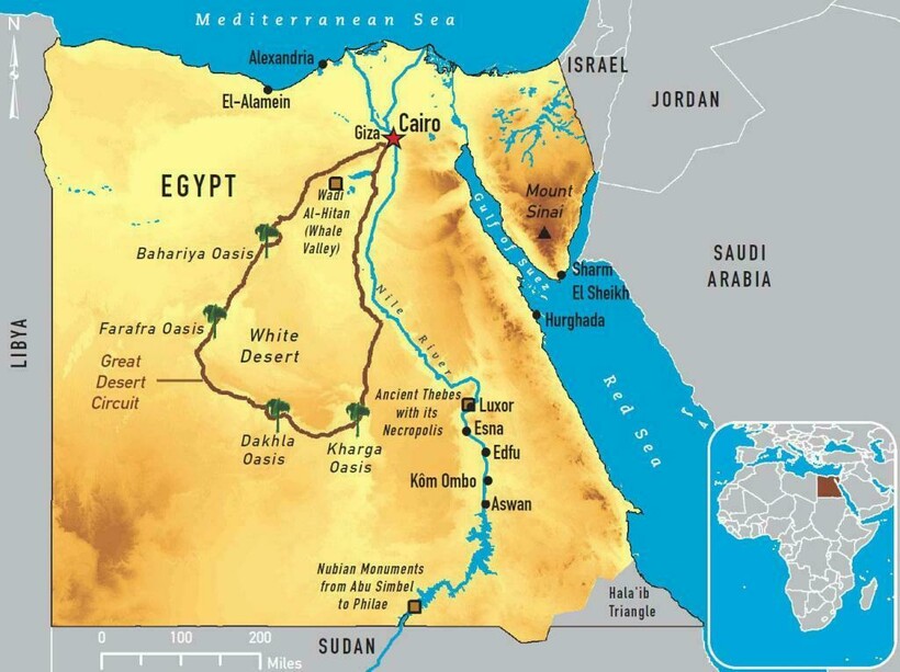 При домашнем выборе египетского места отдыха опытные туристы первым делом находят географическую карту страны, читают путеводители, заходят в интернет, чтобы уточнить погоду в нужном месяце. Но обычная международная политическая схема не дает полной информации об египетских курортах. По ней вы сможете только определить расположение Египта на севере Африки, увидеть географических соседей, столицу страны.